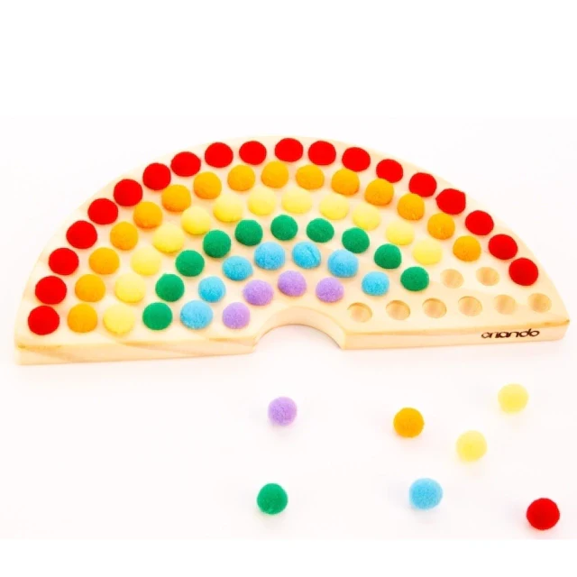 Um lindo arco-íris de madeira inspirado em Waldorf e Monterossi, perfeito para praticar as habilidades motoras finas, trabalho em equipe, concentração e colocar a imaginação a todo vapor.