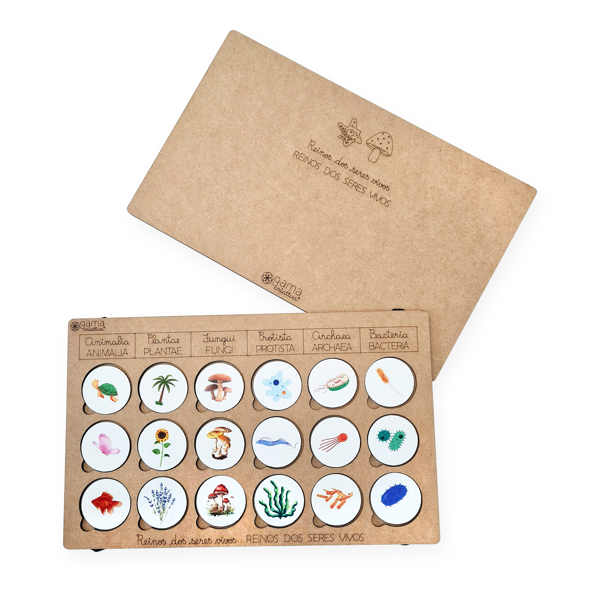 composto por uma base com 18 imagens para classificar os reinos dos seres vivos.